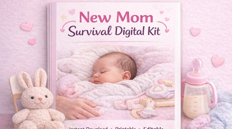 The New Mom Digital Survival Kit gives you instant support with calming routines, baby trackers, sleep schedules, and emergency guides — all in one beautiful editable digital bundle.
